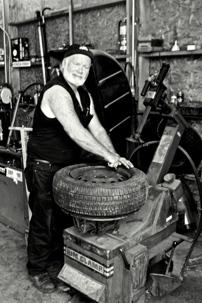 Then I asked if I could photograph him, my people at their jobs series, and he said to photograph his partner Chuck. I looked at Chuck and we laughed when I said I couldn’t see Chuck working. He was at the desk in the office and it was not as exciting and dramatic as the work on the tire machine that Don interrupted to go and draw the map for me! It was so kind of him to take the time to help give me excellent directions that required a lot of turns on one way streets. Thanks Don, Don’s wife, and Chuck at C & D Auto Service.