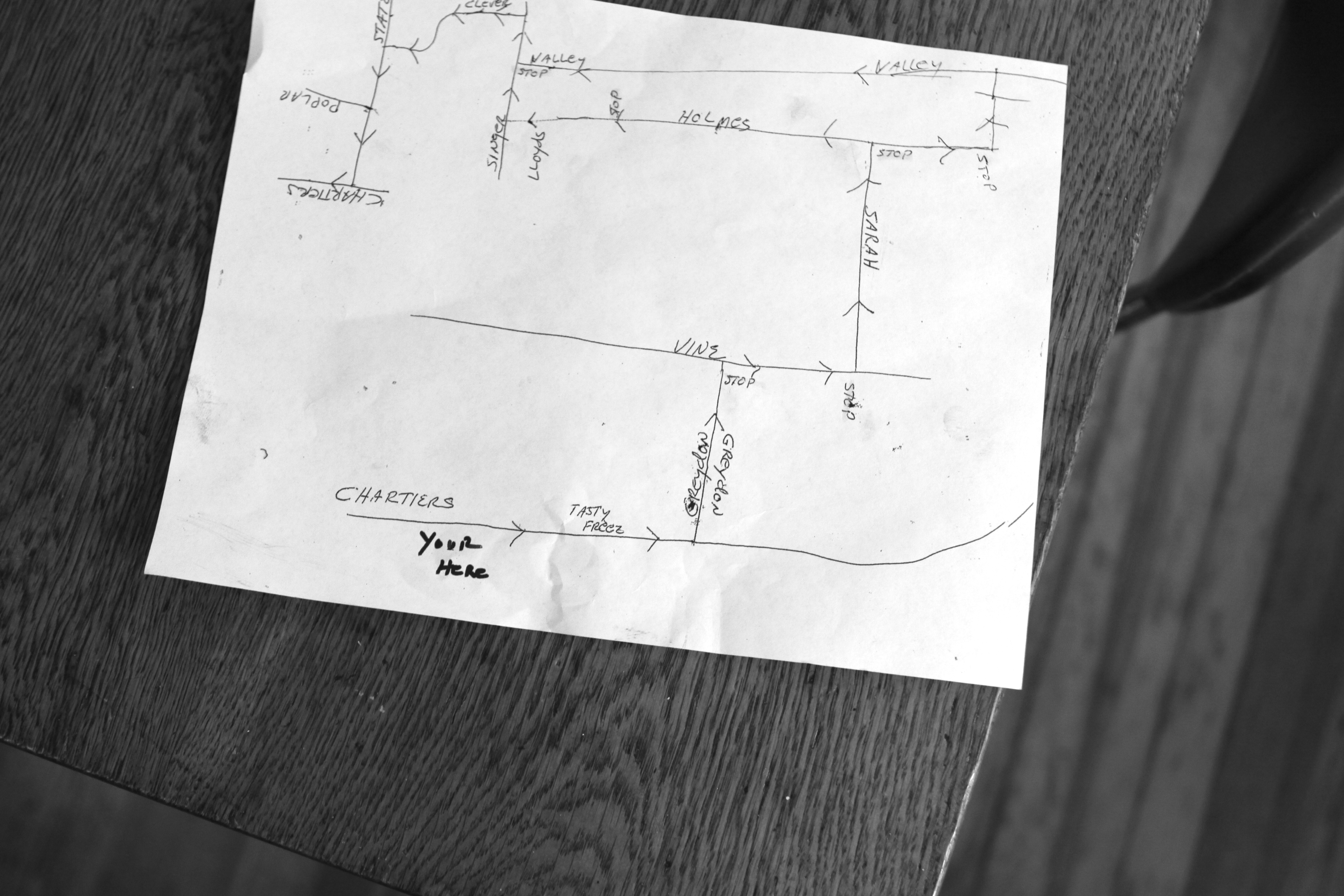 And here is the detailed hand-drawn map Don made for the detour route to Ohio Valley General Hospital.