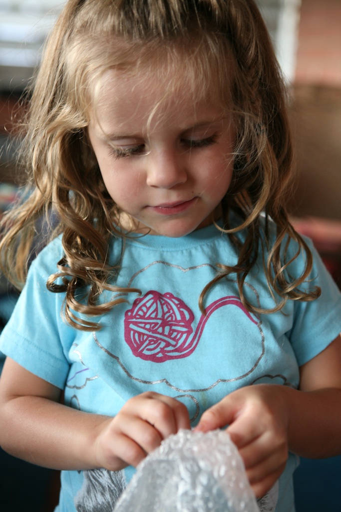 Maura was popping the bubbles one at a time and it was fascinating to watch her take her time.  It seems a skill that’s a natural one.  Pick it up. Squeeze. Pop!