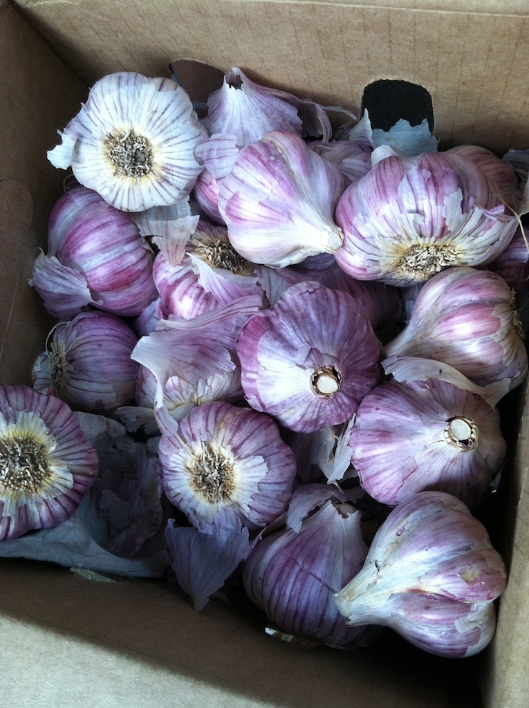 My brother grows the most delicious organic garlic. He mailed me this wonderful gift from Okanogan Washington. Just opening up the box and looking at the bulbs is inspiring.